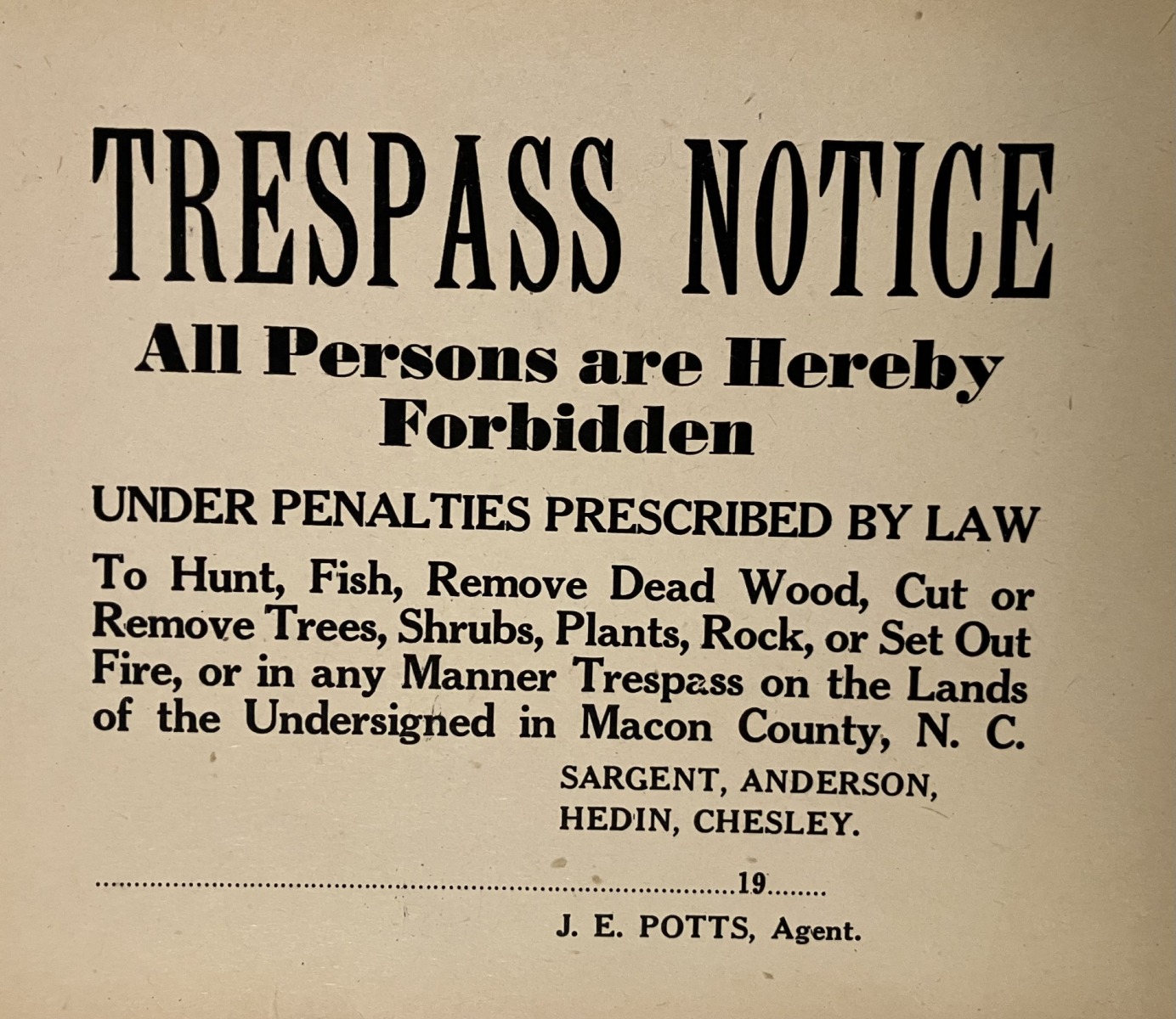 Originally conveyed by T. Peden Anderson, the property transferred on June 3, 1924, to Robert L. Foreman. Ownership later passed to Joan Foreman Klakow (1938– ) and her husband, Dietrich Krakow of Berlin, Germany, daughter of Clark Foreman. On May 24, 1962, the lot was conveyed to Highlands Biological Station.