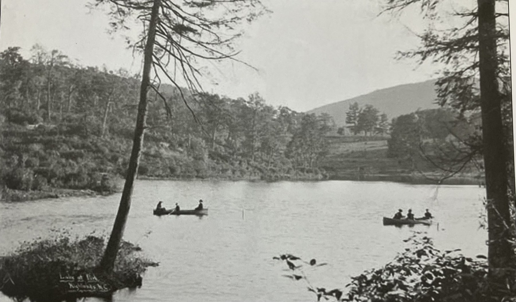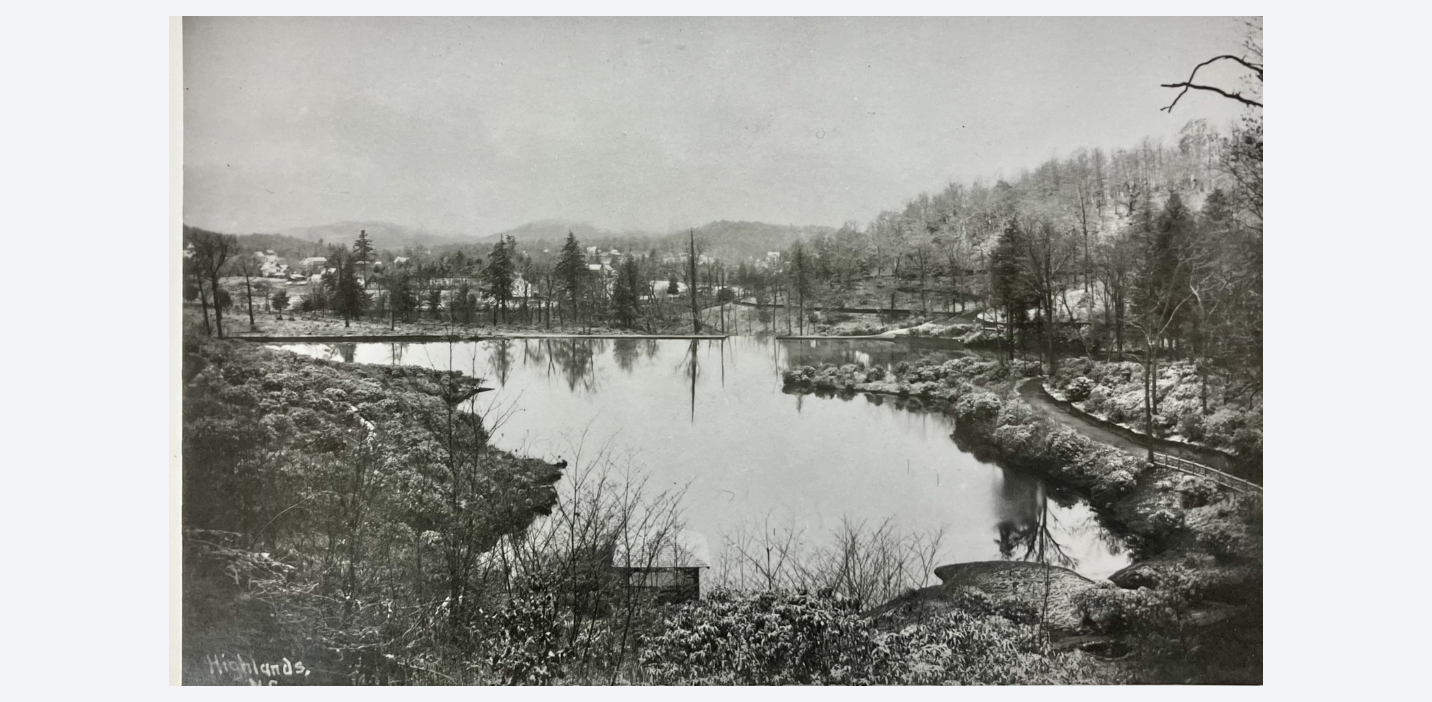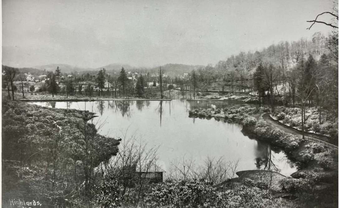 The Ravenels were actively shaping Highlands as a destination. They had been acquiring land since 1886, and by 1890 they built a carriage road to the top of Satulah. In 1893, they decided to create a lake by damming the water from four creeks—streams that still feed the lake today.