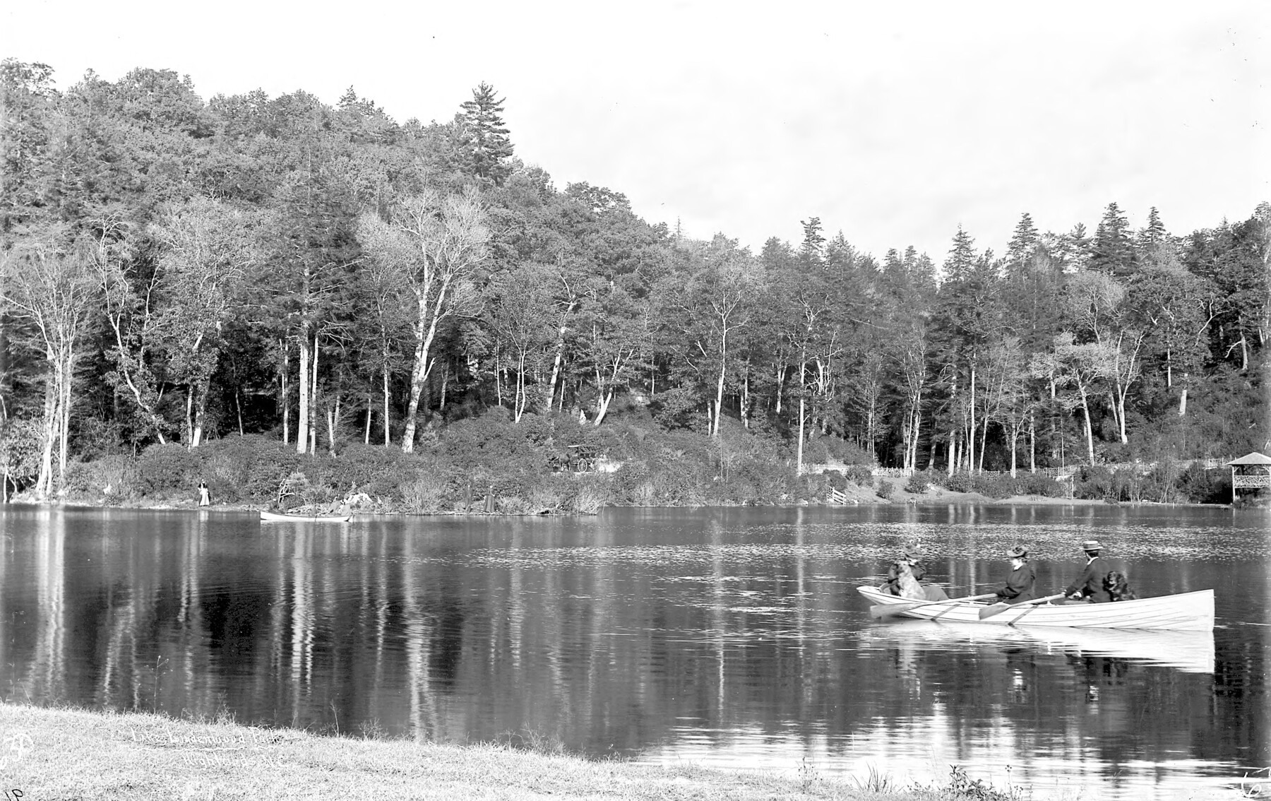 In 1895, a Franklin Press report described Lindenwood Park as a carefully cultivated landscape: plantings around the shoreline, water lilies, fish ponds, winding paths, smooth roads, and a boathouse with boats imported from Spring Lake, Michigan. Lindenwood Park, the article noted, was open to the public through the generosity of Samuel Prioleau Ravenel Jr. (1868–1940).