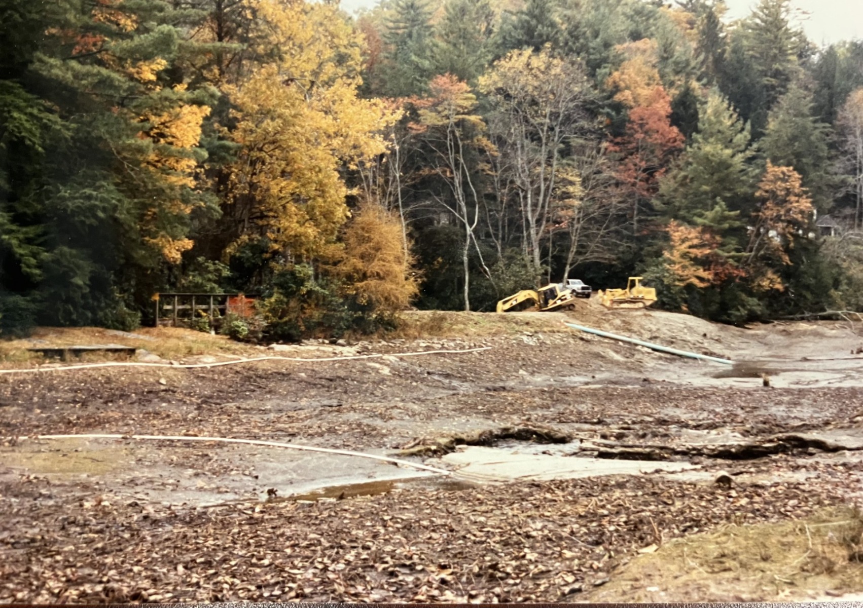 By late fall 1997, replacement became reality. The lake was drained; tall rhododendrons around the dam were removed; and the rebuilt structure was constructed to meet federal regulations.
