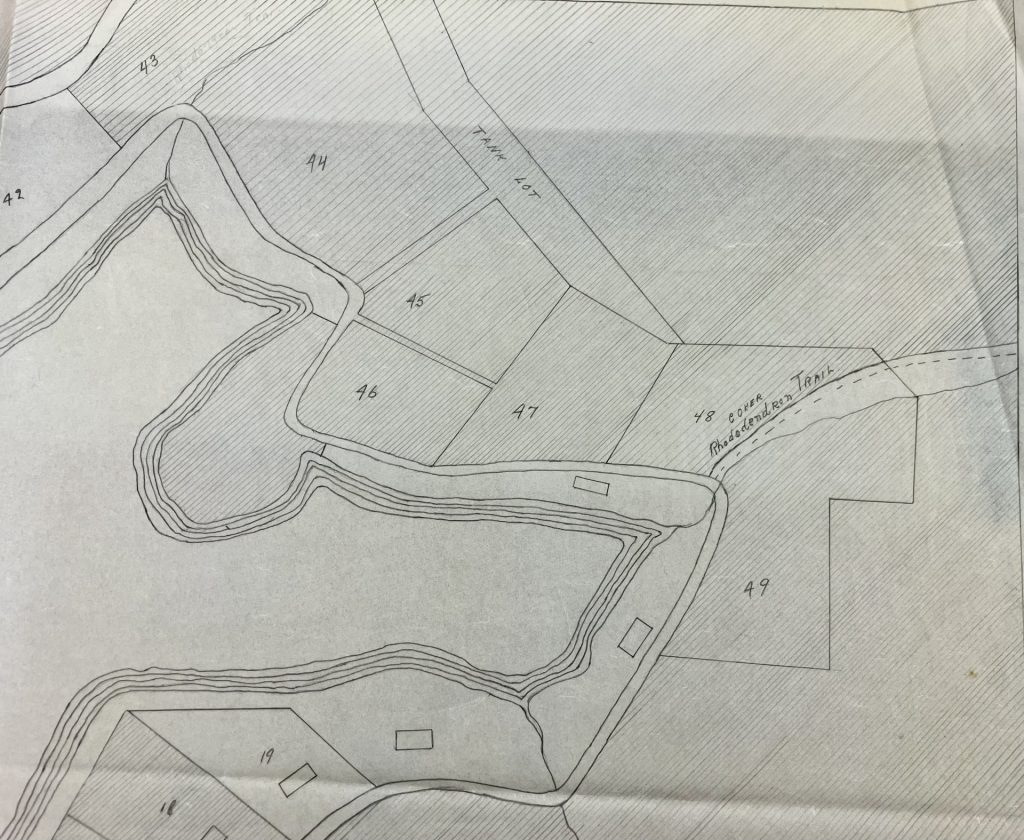 Portions of Lot 48 later became part of the Coker Rhododendron Trail. Additional sections of the Anderson property were likewise conveyed on August 8, 1931, to W. C. and Louise V. Coker and were subsequently transferred to Highlands Biological Station on June 14, 1954.